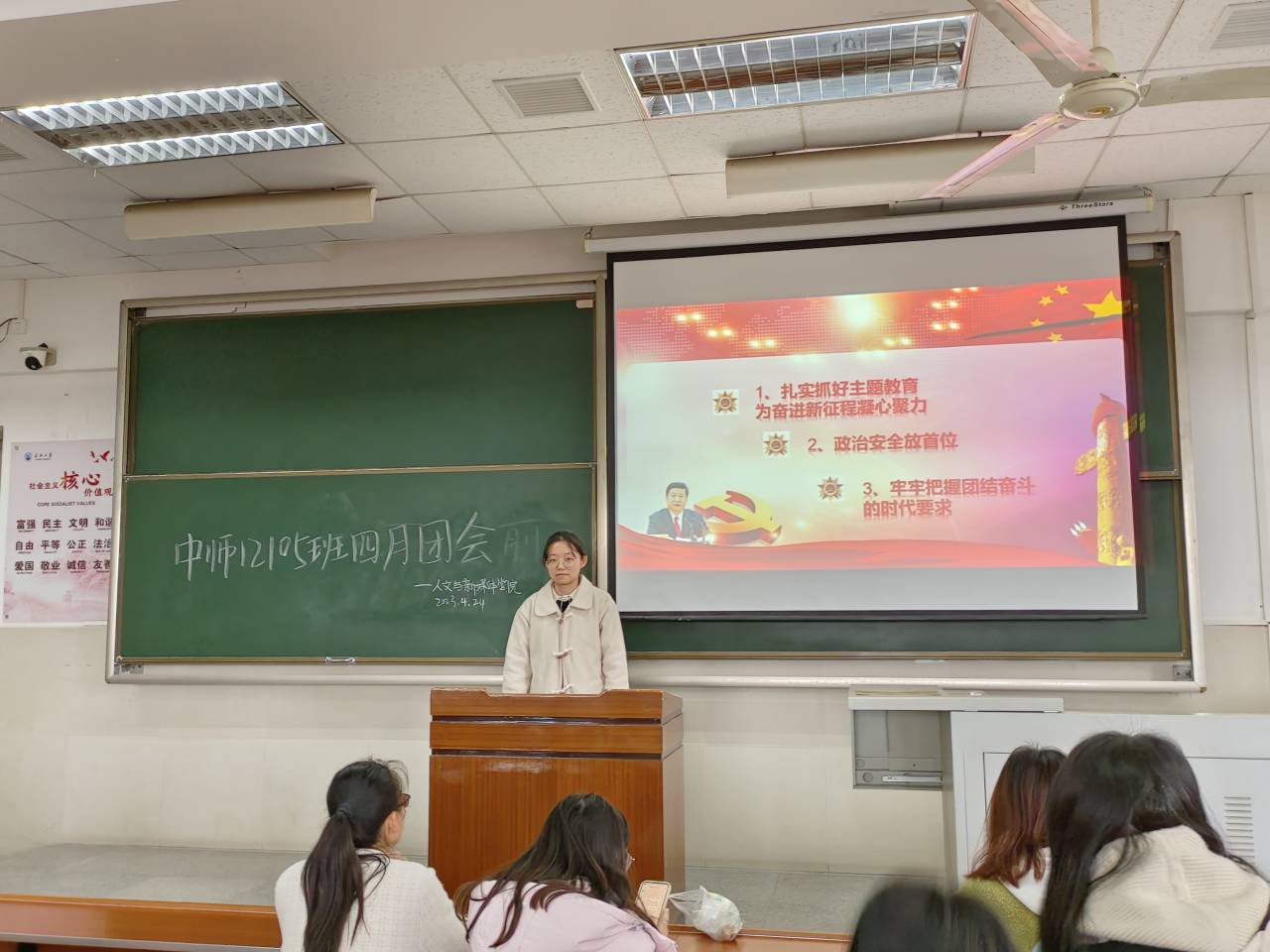 此次四月主题教育实践活动主要从三个方面展开,分别是“扎实抓好主题教育,为奋进新征程凝心聚力”、“政治安全放首位”和“牢牢把握团结奋斗的时代要求”。学院各团支部高度重视、积极组织,结合主题,以多元化方式进行学习。会后,各团支部自行组织进行“青年大学习”网上主题团课学习。