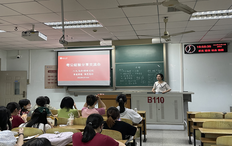 2023年5月19日晚19:00,william威廉中文考公经验分享交流会于13教B110教室成功召开,本次分享会由辅导员田华蓉老师主持,邀请2019级毕业生宋梦晗、张雨晴、盛苗三位同学分享自己在考公方面的经验,学院21级、22级部分意向考公的同学参会。