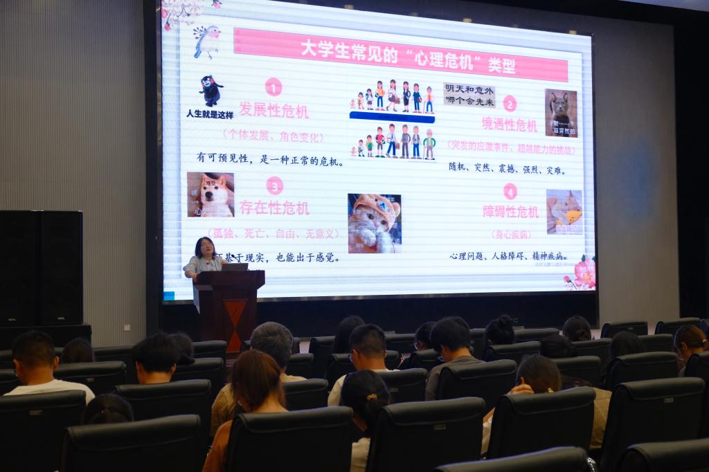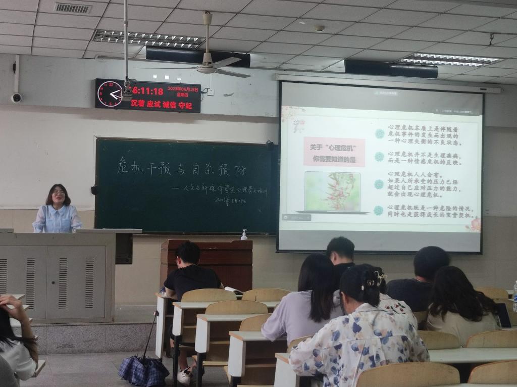 培训伊始,陈老师通过一张“生命意义”问卷测试引入培训主题,并“认识危机,有效应对”、“了解自杀,临危不乱”、“预防自杀,可以作为”三个方面开展危机干预与自杀预防培训,首先,陈老师从心理危机的含义、类型、识别和干预四个角度,向大家普及了心理危机的相关知识。她的讲解深入浅出,让学生们对心理危机有了更全面、客观的认识。随后,陈老师深入探讨了“自杀”这个话题,她通过罗列科学的数据和近年来的相关案例调查,让学生们对自杀有了更加深入的了解,这种数据和案例的呈现使得学生们能够客观地认识到自杀问题的严重性和复杂性。同时,陈老师号召心理骨干学会自助与助人,主动寻求帮助,听从专业建议,发现危机第一时间上报。陈老师鼓励同学们善于发现生命的美好,主动地守护自己和他人的心理健康。