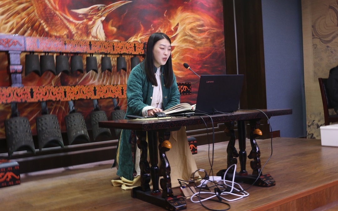 杨伟业老师从什么是“昆”、清唱的基本规范、昆曲小知识科普等三个方面入手,通过具体案例讲解了对昆曲的常见误区以及如何如何通过用韵差异和定谱差异来区分南曲与北曲,为在场师生建构起对昆曲及文人清唱的初步认识。杨老师还通过现场演唱的方式,示范了昆曲的基本唱法,展示了昆曲的代表性作品,赢得在场师生的阵阵掌声。