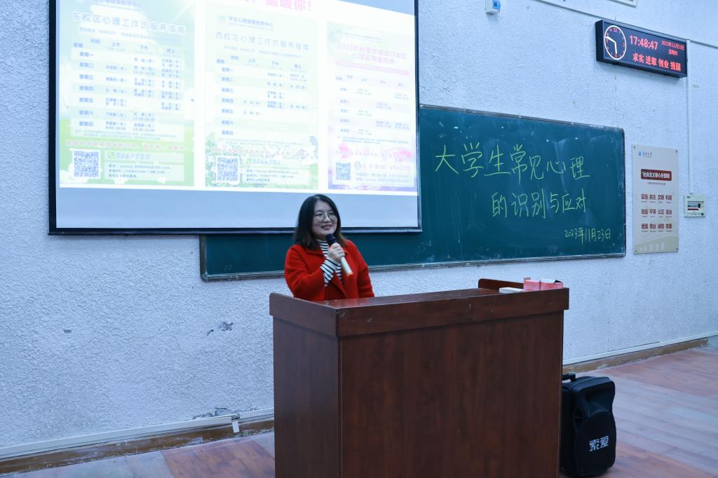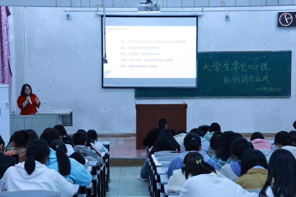 培训伊始,陈娟老师幽默提问:“今天,你网抑云了吗?”引出当代大学生普遍面临心理问题困扰。接着,陈娟老师从认识心理健康、识别心理危机、正确应对心理危机以及我校心理健康教育体系四个方面,对大学生常见心理问题的识别与应对进行了详细讲解。陈娟老师重点介绍了判断心理危机的三个标准、心理危机的高发时段以及危机信号和线索,告诉学生骨干们要注意身边同学的言行表现,要主动担当在危机干预中的职责,关心关爱身边的同学。“当他人出现心理危机时,我们应该给予尊重和陪伴,认真倾听,不着急给予建议,不做价值评判,认可对方的痛苦感受。”最后,陈娟老师和同学们亲切互动,开展有奖问答环节,检验同学们的学习成果,培训在热烈的掌声中落下帷幕。