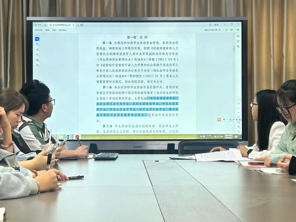 龚玉云老师强调了寝室文化节作为宿舍育人载体的重要性,她表示此次寝室文化节工作方案充分结合了学院特色,有利于展示人文学院宿舍风采。此外,龚老师还与在场同学们一起学习了关于奖助学金的相关文件,明确资助对象、资助流程等。