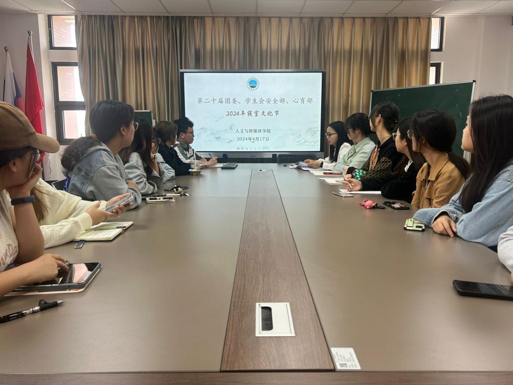 会议伊始,安全部、心育部负责人就近期宿舍卫生安全检查、心理健康教育月及困难学生资助等事项进行了汇报交流,大家重点就本学期寝室文化节工作方案进行探讨,交流内容设置、风采展示等。