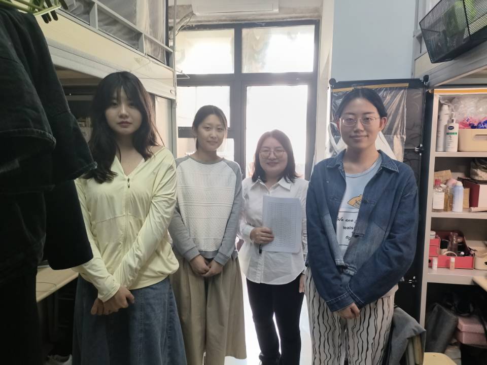 本次检查重点对学生寝室的宿舍卫生、用电管理、消防安全、财产安全等情况进行了检查。检查过程中,各寝室整体卫生情况均保持良好,未发现违规违纪情况,物品收纳有序,通风良好,被褥衣物叠放整齐,地面、桌面整齐干净,安全用电。对于在部分寝室发现的垃圾堆放问题,立即督促整改,同时对各宿舍同学进行消防安全宣传教育。陈娟老师在检查途中与同学们交流宿舍生活,对同学们积极学习的态度表示赞扬,同时对同学们的学习生活提出了一些自己的意见和建议,最后提醒同学们加强安全意识,提高防范水平。