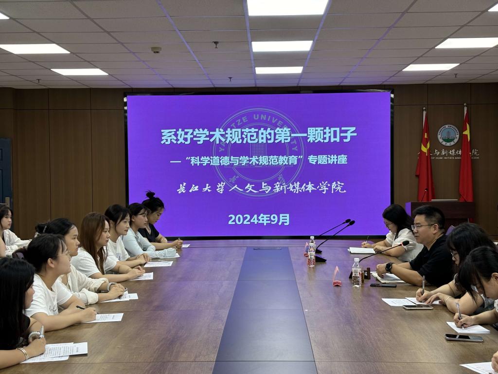 随后,杨家海副院长简要介绍了学院发展概况以及学位管理与研究生教育基本情况,并作了题为《系好学术规范的第一颗扣子》的科学道德与学术规范的专题报告,报告从“屏蔽学术风险,夯实人生路途”、“增强学术意识,恪守学术规范”两个方面展开,呼吁大家要端正学术态度,遵守学术规范,恪守学术诚信,坚决抵制学术不端行为,共同营造一个风清气正的学术环境。