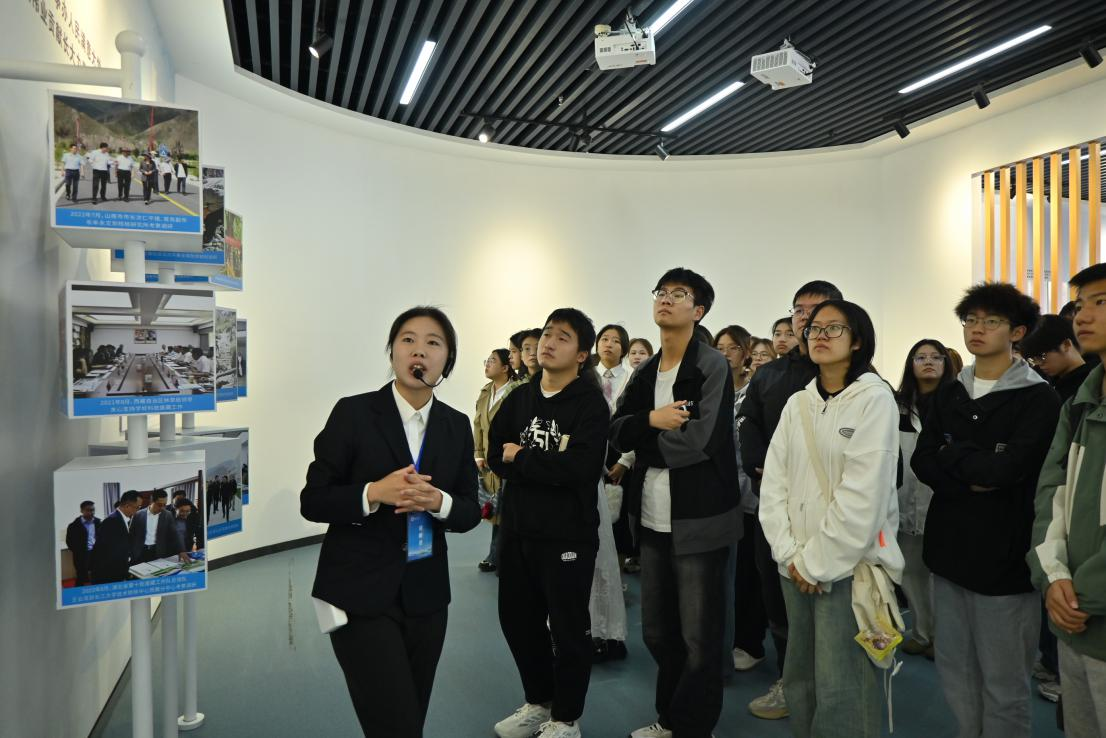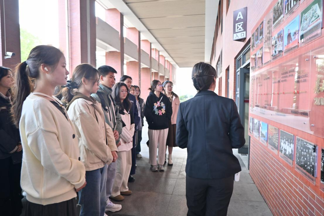 跟随校史讲解员、广电12201班学生杨绍丽的脚步,学员缓步在校史长廊中,逐一了解学校合并组建前后的发展历程,感受学校先辈、优秀师生代表投身教育,建设祖国的光辉岁月和卓越成就。在校史馆,通过参观“党旗飘飘,求实传薪火”“硕果累累,进取创辉煌”“芳华灼灼,创业显声誉”“征途漫漫,报国践初心”四个展区,学生们更加懂得了“求实、进取、创业、报国”的长大精神内核,对学校办学历史、学科建设、典型事迹有了更为深入的了解。