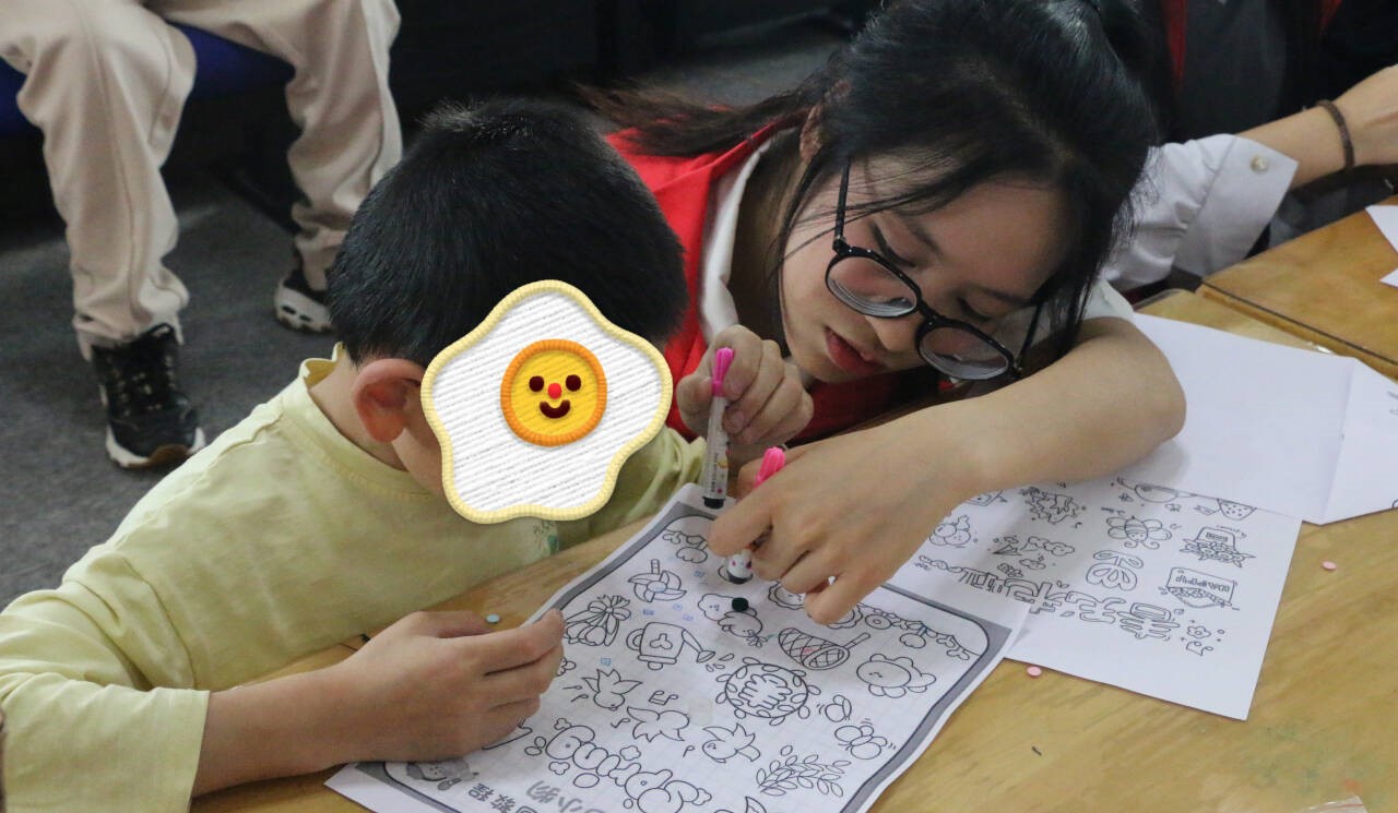 风车制作结束后,成员们为在场孩子们准备了印有各种图案的涂色纸,大家现场挥色扬彩,孩子们的创作充满想象。最后,孩子们把自己创作的作品赠送给了各位成员,这将成为大家最美好的回忆。现场成员与孩子们还一起合唱了歌曲《不再见》和《虫儿飞》,一首饱含未来相见的期盼,一首满是童心永存的祝福。