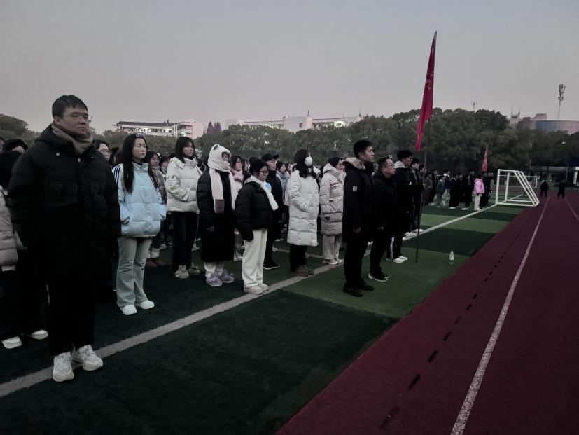(通讯员归航/文 胡程越/摄)12月16日,我院在西校区操场举行本学期第二次升旗仪式。学院党委副书记竺正海,辅导员归航,24级全体本科生齐聚操场,共同参与此次活动。