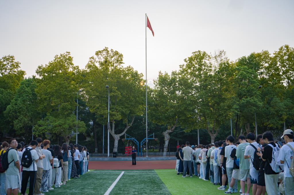 旭日东升,秋风惬意。全体人员肃穆站立齐唱国歌,向冉冉升起的国旗行注目礼。礼毕,团委学生会学生代表张显浩以《赓续爱国情怀,践行强国有我》为题,号召广大同学从细微处着手,将爱国情怀化作前进的动力,以青年赤忱熔铸信仰,在复兴长卷续写“鉴往知来,向史而新”的担当!把爱国情、强国志、报国行自觉融入实现中华民族伟大复兴的奋斗中,以实际行动为学校“双一流”建设贡献青春力量。