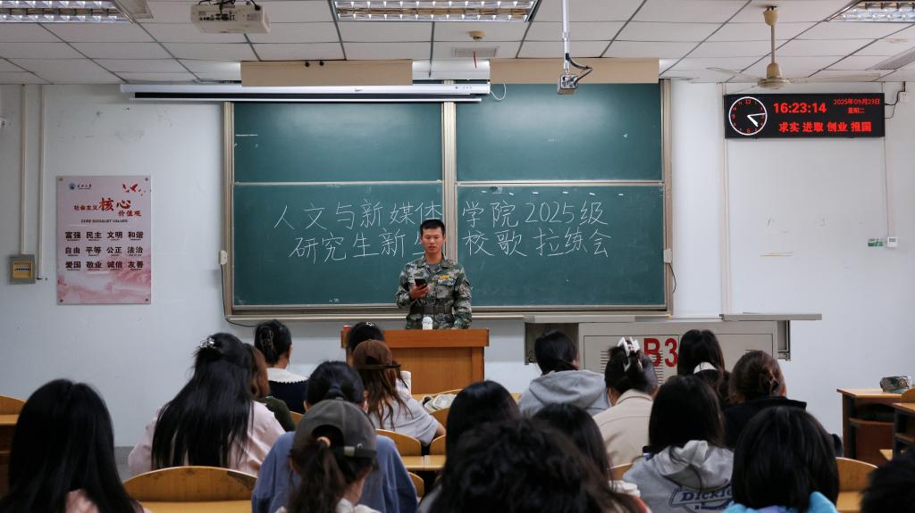 (通讯员 夏娇)为增强2025级研究生新生对学校的认同感与归属感,涵养学生爱校荣校情怀,学院于9月18日—9月24日精心组织开展新生学唱校歌系列活动,引导学生在旋律与歌词中感受学校浓厚的精神底蕴,凝聚前进力量。