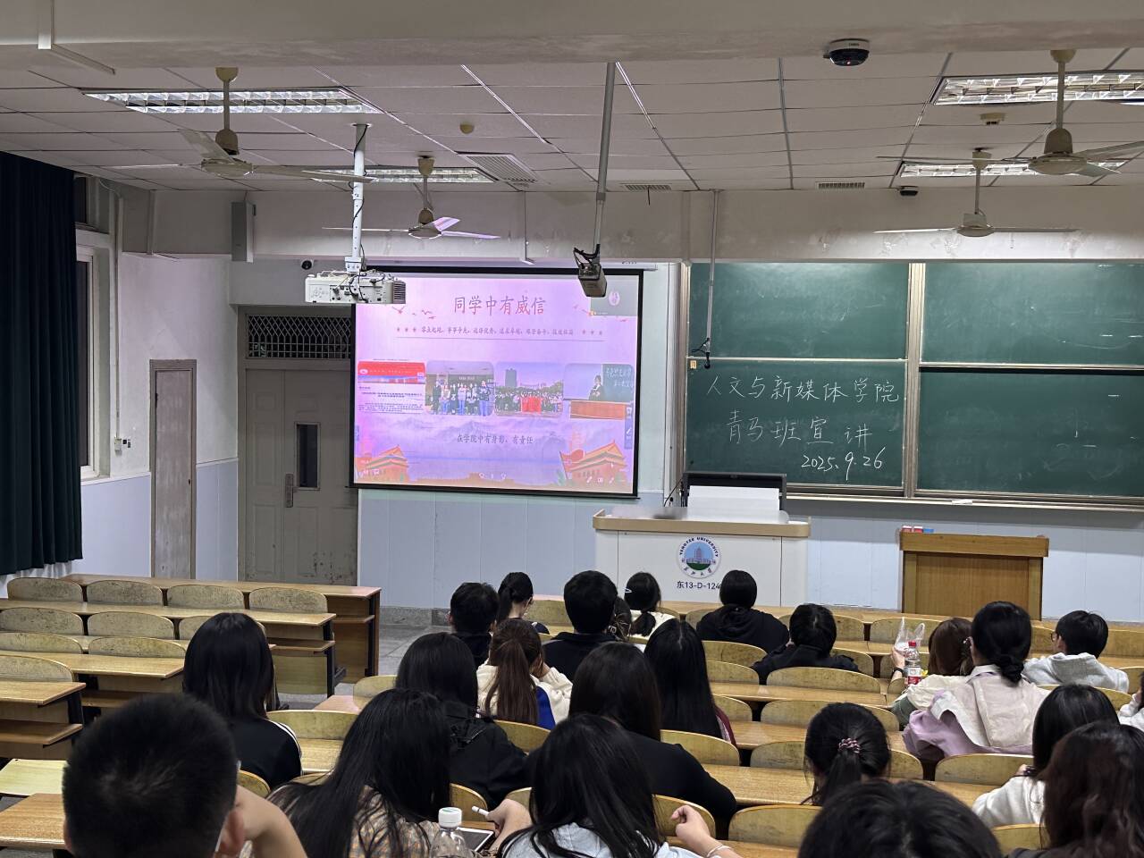 宣讲环节结束后,院青马班学员、本次培训活动组织者之一张凯琪同学进行了系统介绍与动员。她详细解读了学院青马工程的培养目标、特色课程体系以及丰富多彩的实践锻炼平台,并分享了自身在理论研习中深化认识、在社会实践中增长才干、在团队协作中学会担当的亲身经历与收获。她还就青马学员的选拔标准、培养过程及发展前景进行了说明,鼓励新任团干积极关注并参与青马工程,在更高的平台上锻炼自我、服务大局。