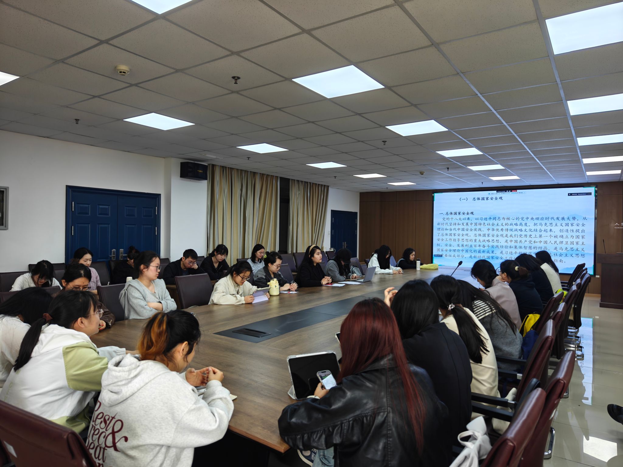 活动中,全体研究生集中观看“千万师生同上一堂国家安全教育课”公开课,系统学习总体国家安全观核心内涵,重点关注意识形态安全、文化安全、网络信息安全等与专业紧密相关的安全领域,深刻认识新媒体时代青年学子在维护国家安全中的重要使命。学院还积极动员研究生参与“全国大学生国家安全知识答题”活动,4月15日至17日期间,全院研究生踊跃参与线上答题,以赛促学、以学促行,进一步夯实国家安全知识基础,强化维护国家政权安全、制度安全、意识形态安全的思想自觉和行动自觉。同时,研究生党支部、团支部以主题党(团)日、主题班会等形式,结合专业特点,围绕“新媒体语境下的国家安全宣传”“青年文人的国家安全担当”等话题展开深入交流,同学们结合专业学习分享心得,辨析网络谣言、文化渗透等安全风险,凝聚“国家安全人人有责”的共识。