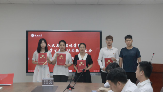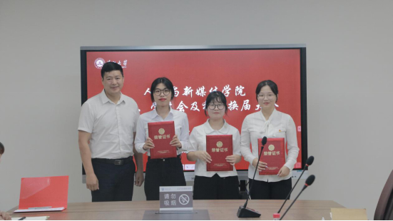 会议伊始,何宁老师宣读换届文件。归航、何宁及胡世先分别为学生干部代表颁发聘书、工作证及荣誉证书。