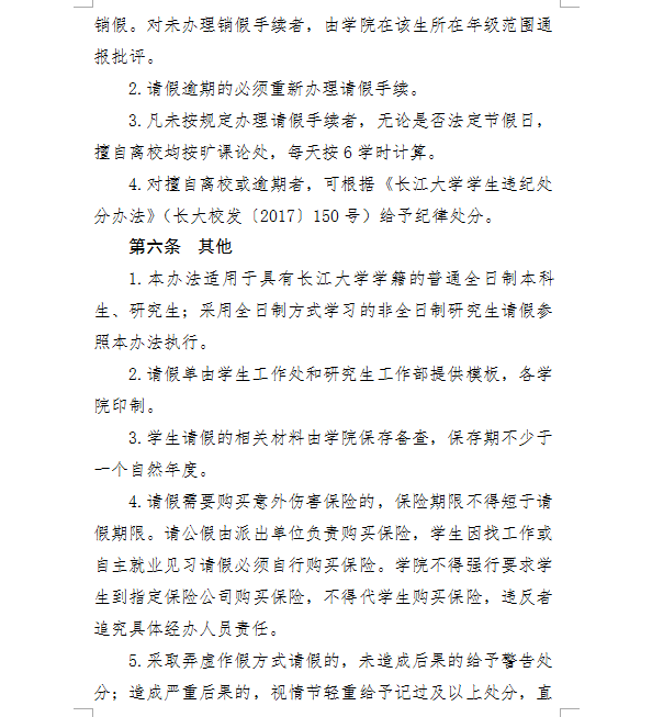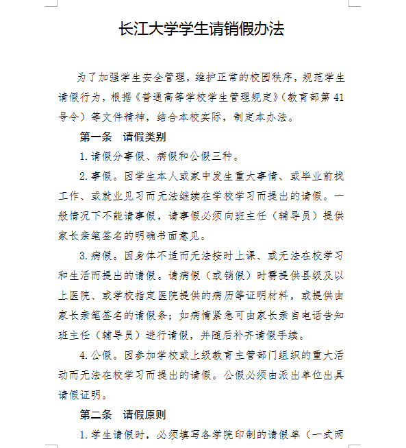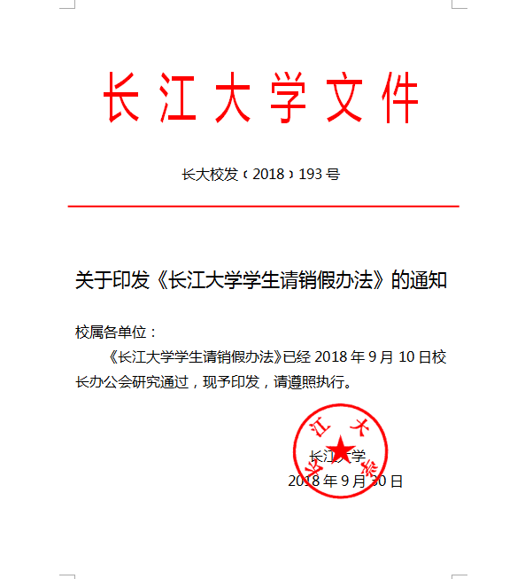 williamhill中文学生请销假办法 长大校发【2018】193号