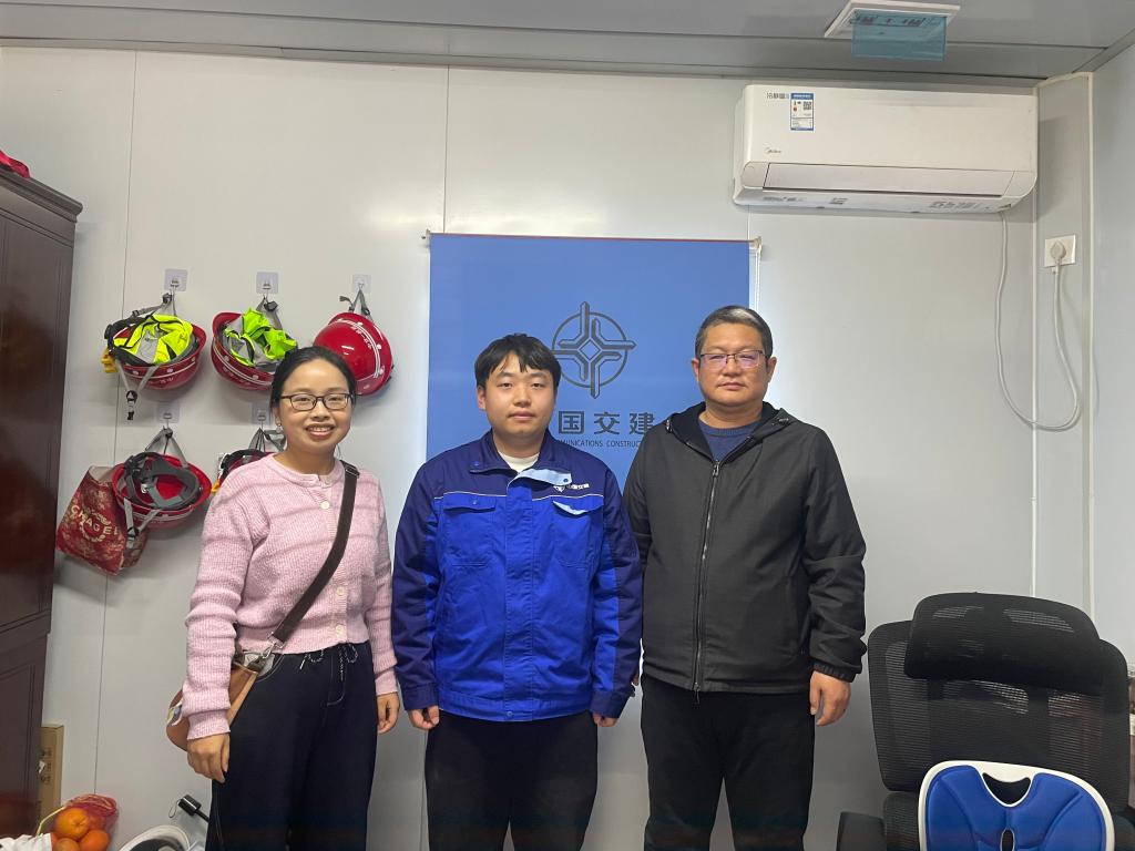 在中交一航局荆州市产业创客中心项目部,龚玉云、彭超详细了解了滕明桂同学的工作岗位、薪资待遇、职业发展前景以及单位对其工作表现的评价。项目部负责人表示,滕明桂同学入职以来,态度端正、勤奋踏实,在工作中能够快速适应岗位需求,积极主动向老员工请教,展现出了良好的专业素养和较强的学习能力,得到了部门同事的一致认可。彭超鼓励他要继续保持吃苦耐劳的精神,在实践中积累经验、提升技能,努力在岗位上实现自身价值,助力荆州新城建设,为荆州当好江汉平原高质量发展排头兵贡献自己的力量。