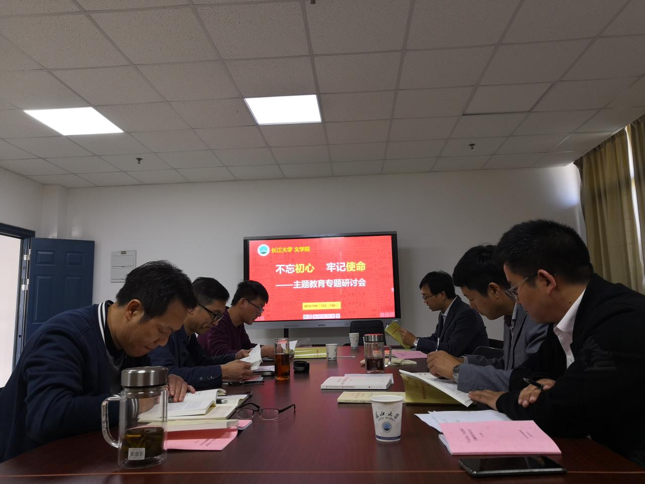 10月19日,文学院党委中心组全体成员在701会议室开展理论学习活动,学习活动由党委书记杨克非主持。