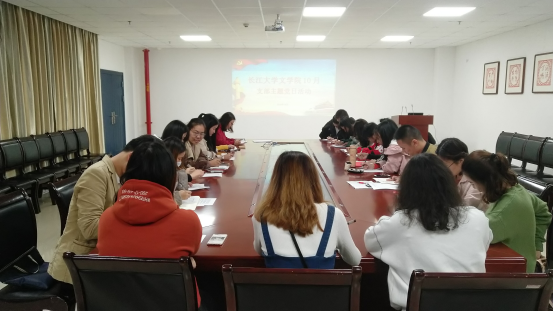 (通讯员 李博)2018年10月15日下午五点,新闻历史学生党支部、中文学生党支部在文科大楼705召开了10月支部党日主题活动,全体在校党员全部准时到会,本次活动由石磊同志主持。