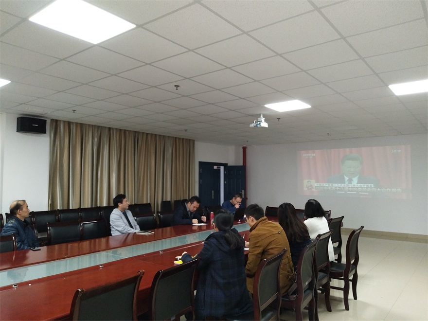 全体人员认真聆听了习近平总书记在会上的报告。习近平总书记指出,中国共产党第十九次全国代表大会,是在全面建设小康社会决胜阶段、中国特色社会主义进入新时代的关键时期召开的一次十分重要的大会。我国社会主要矛盾已经转化为人民日益增长的美好生活需要和不平衡不充分的发展之间的矛盾。不忘初心,方得始终。中国共产党人的初心和使命,就是为中国人民谋幸福,为中华民族谋复兴。这个初心和使命是激励中国共产党人不断前进的根本动力。