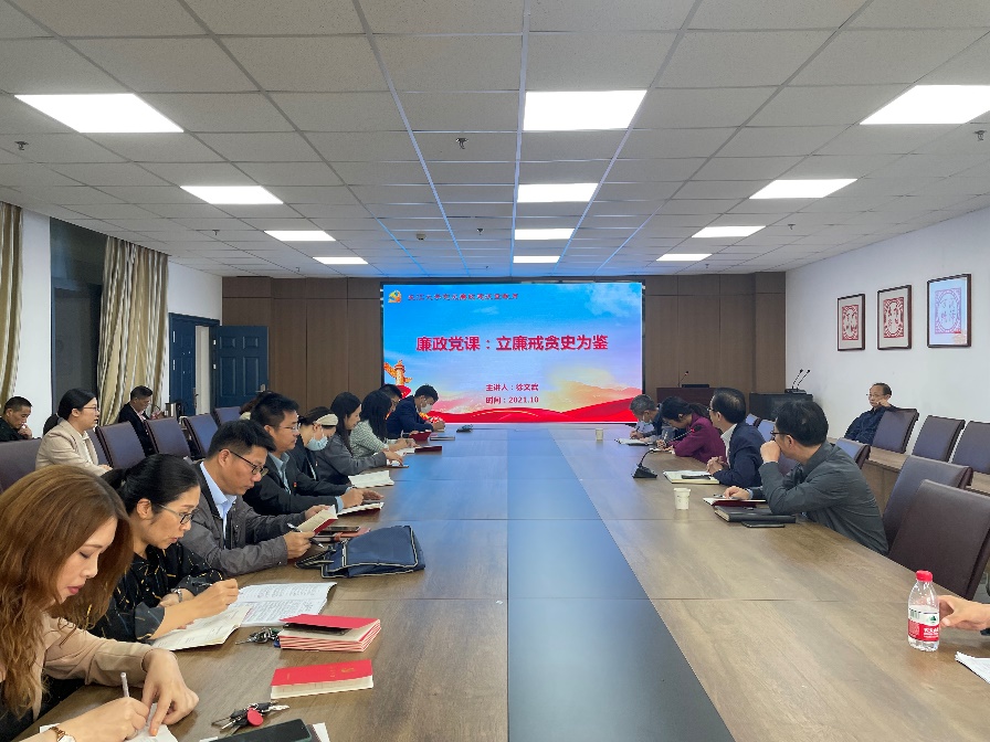 为扎实开展2021年党风廉政建设宣传教育月活动,10月7日,人文学院历史系教授徐文武受邀为校纪委党支部、我院教工党员做党风廉政专题党课。党课由学院党委书记杨克非主持。