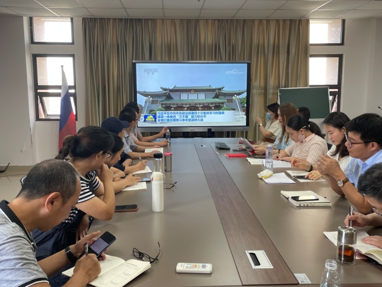 2022年9月15日,中文教工党支部在文科大楼701会议室开展9月份支部主题党日活动。支部全体党员参加活动,支部书记杨名主持活动并作主题党课。