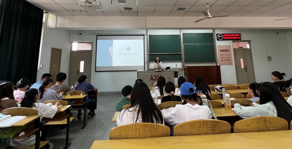 薛静老师主讲《编辑学理论与实践》,她从新闻报道策划与组织的操作流程出发,用图片的方式为大家讲解了如何进行新闻报道策划。凭借精彩的课堂设计、沉稳从容的讲授、条理清晰的解说,薛静老师获得评课教师一致好评。