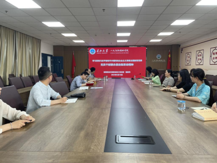 会议指出,人文学院作为意识形态工作的前沿阵地,肩负着重大责任,全体学院教师要站在全局高度把思想和行动统一到党中央的决策部署上来,增强责任感和使命感,提高政治站位、强化政治担当,守住文化主阵地。