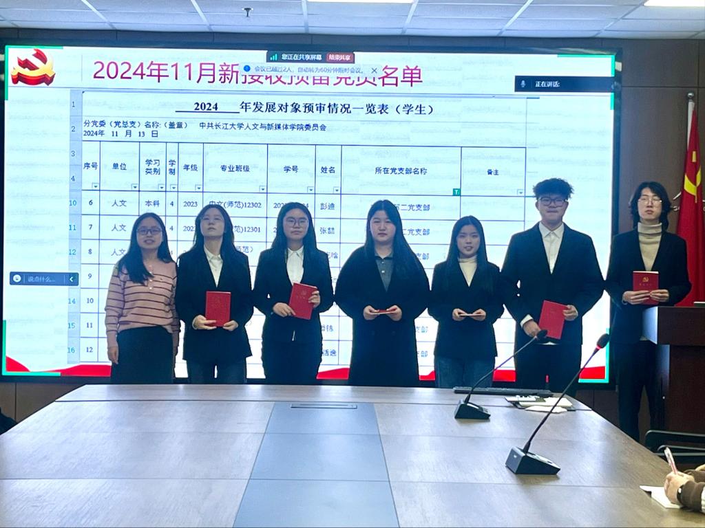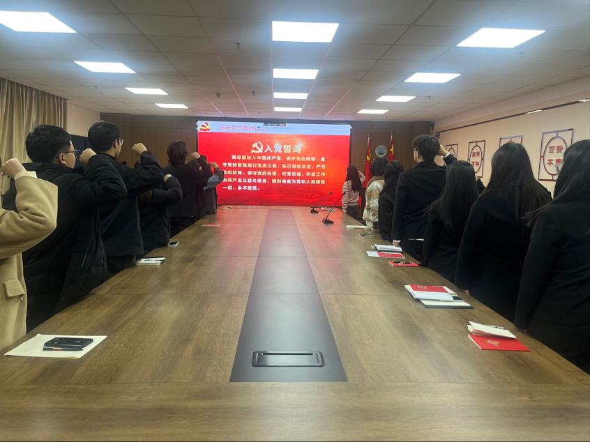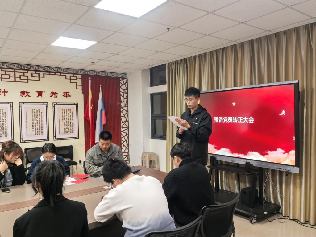 活动第二项为预备党员转正及预备党员接收大会。各位预备党员向所在支部提出转正申请,发展对象则结合近期思想学习做出汇报。通过不记名投票的方式,确定了本次的转正以及预备党员的人选。其他党员对其表示祝贺,各支部书记也送上党章党徽并表示:祝贺预备党员成为正式党员,欢迎发展对象加入中国共产党。