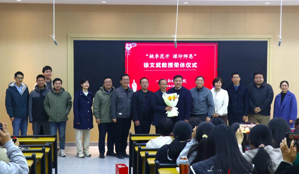 徐文武教授作荣休感言。他回忆自己的工作岁月,无悔自己的选择付出,表达了对教育事业的热爱和对学院今后发展的期盼和祝愿。
