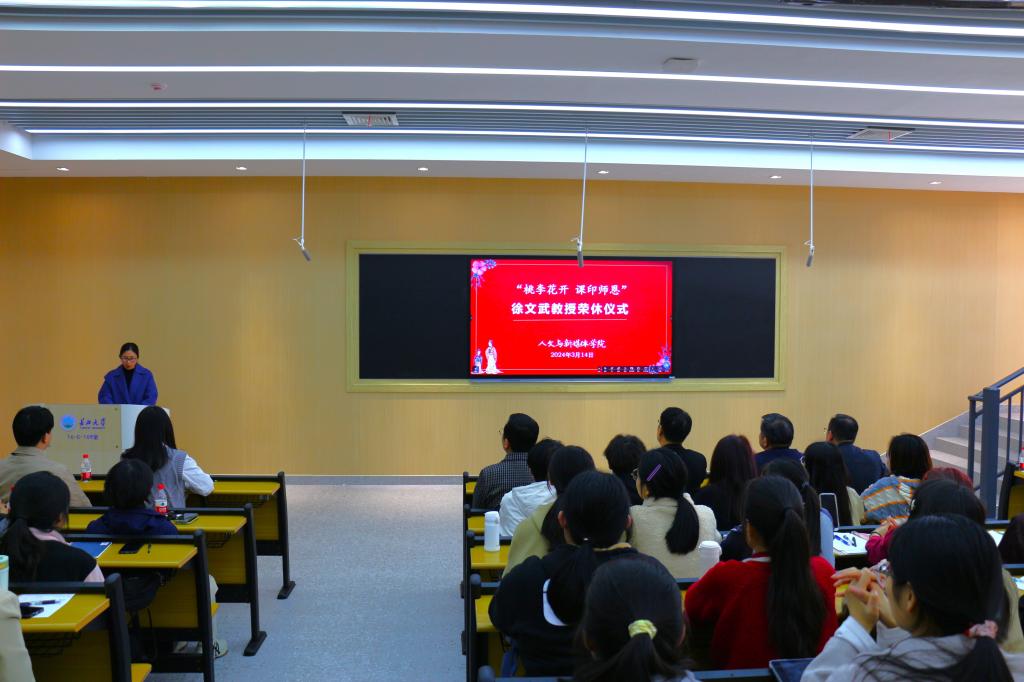 (通讯员 邝晴/文 孙晴 程欣睿/摄)岁月映初心,荣休敬韶华。3月14日下午,“桃李花开 课印师恩”徐文武教授荣休仪式在16教C109举行。william威廉中文领导、校友代表、历史系师生参加仪式。活动由分工会主席吴桂美主持。