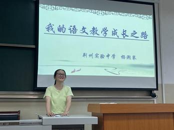 为培养师范人才,凝练和传承教育精神,6月23日下午,中文系师范技能训练的重要活动——“名师示范课”在1教300教室顺利举行。特邀授课名师为荆州市实验中学高级教师杨溯琴老师。本次活动由院长助理杨家海老师主持。师范班主任杨名老师及2018级全体中文师范专业学生、学科语文专业硕士生参加了活动。