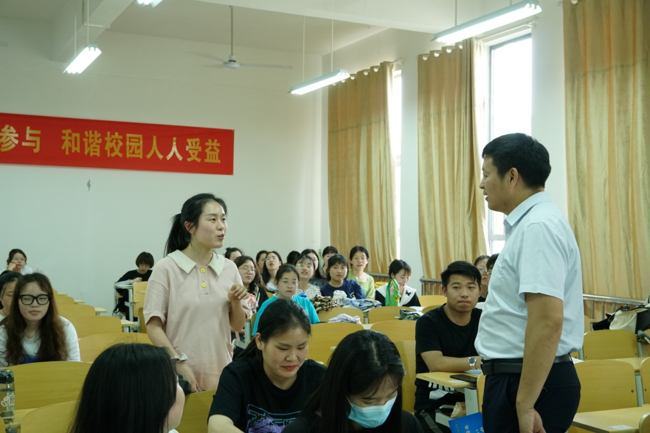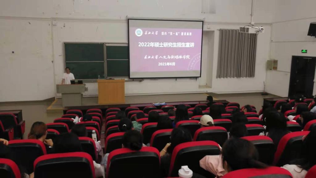 先后在湖北民族大学文学与传媒学院和恩施学院文化与传媒学院集中宣讲,胡世先介绍了学院师资力量和近两年来专业建设的突出成绩,解答了关于招生方向、参考书目设置、2021年研究生录取情况等学生热切关心的问题,提醒同学们要明确考研目标,做好自我学业分析,理性择校。在互动环节中,胡世先针对同学们提出的研究生选拔条件、复习方法、奖助学金等问题作了详细解答。