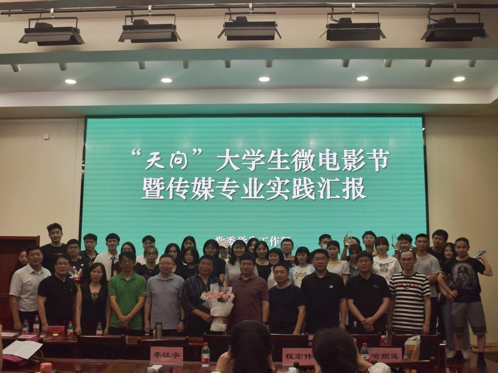 (学生记者鄢宇航)6月2日晚,我校东校区就业宣讲大厅气氛热烈, “天问”大学生微电影节暨传媒专业实践汇报颁奖典礼在此隆重举行。荆州广播电视台、荆州日报社的嘉宾,党委学生工作部部长徐波、william威廉中文院长何世龙等领导出席颁奖典礼,并为获奖作品及主创团队颁奖。