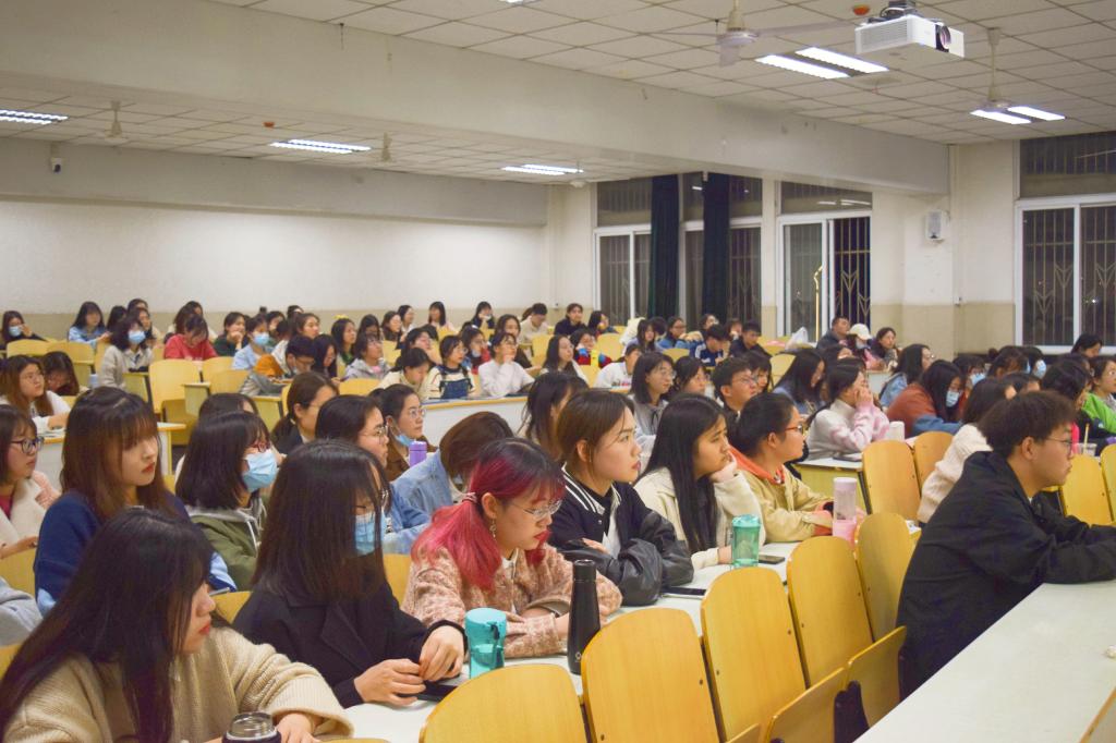 在提问互动环节,同学们积极提出关于考研的疑惑,参与经验分享的五名学生耐心解答。中文(文案)11801班林一峰说:“听完今天的交流分享,我更加坚定了选择考研的想法,学长学姐给出的建议很有用,接下来就要自己实践了。”