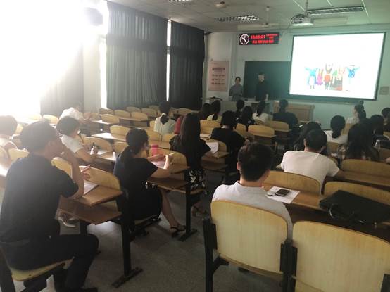 2020年9月8日,学院举办了由汤芳、Alex两位教师共同主讲的《中西方文化比较研究》公开课。课堂上,两位老师分别以中文、英文进行教学,通过对“什么是文化”、“文化的内涵与外延”等一系列问题的讨论,引导学生学习中西方文化的差异和融合,加深了学生对相关概念的理解。院长何世龙、党委书记杨克非、副书记胡世先、副院长余劲东,以及孙继、吴桂美、吴新平、彭彬、王昌凤、曹池慧、张丽、陈先蕾老师参与听课活动。