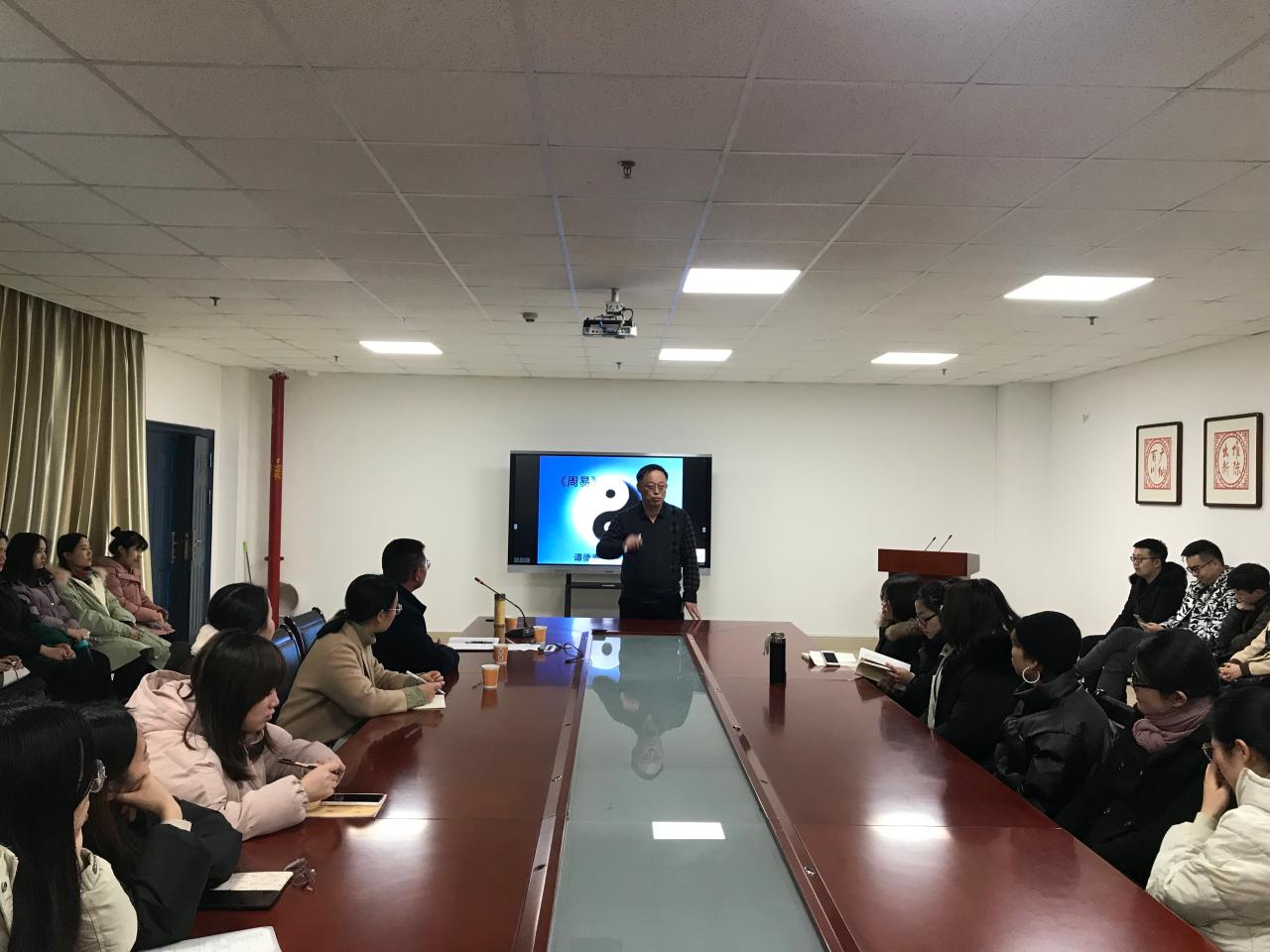 讲座伊始,谭教授说到:研究《易经》是非常重要的,《易经》不是迷信,而是一种科学的算法,是中国古代自然科学和人文科学的结晶。讲述过程中,谭教授为同学们讲述了什么叫《易经》和以《周易》为代表的中国文化。认为中国文化是一种以历史和时间(波动性)为主的文明体系,空间性、逻辑性是辅助,西方文化是一种以逻辑和空间文化(粒子性)为主的、为根本导向的文明体系,时间性只能是其从属性存在。还提到了道家思想的“无中生有”,其本质也是变易,佛学的空、无常、无自性,就是变易。谭教授还结合上南下北阴阳图的示例,生动形象的结合现实生活中的例子为同学们讲述《易经》的专业知识,使得讲述既通俗易懂又富有文化内涵,参会的同学老师都受益匪浅。