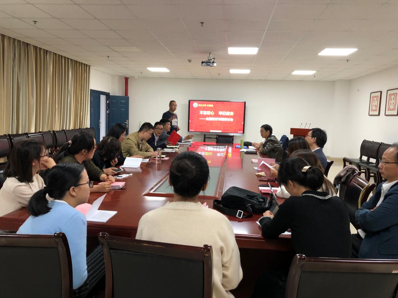 为深入贯彻“不忘初心、牢记使命”主题教育工作部署,进一步筑牢开展好主题教育的思想基础。10月31日下午2点,文学院在文科楼705会议室召开10月份教职工第二次支部主题党日活动。由文学院党委书记杨克非主持会议。