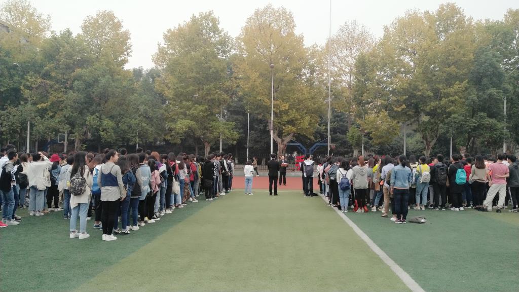 (通讯员 梁淑仪)“恰同学少年,风华正茂;书生意气,挥斥方遒。”2018年10月8日上午7时许,williamhill中文文学院2018年升旗仪式在东校区田径场顺利举行。校团委书记关辉、文学院党委书记杨鑫、文学院辅导员以及文学院大二大三全体学生参加了此次升旗仪式。