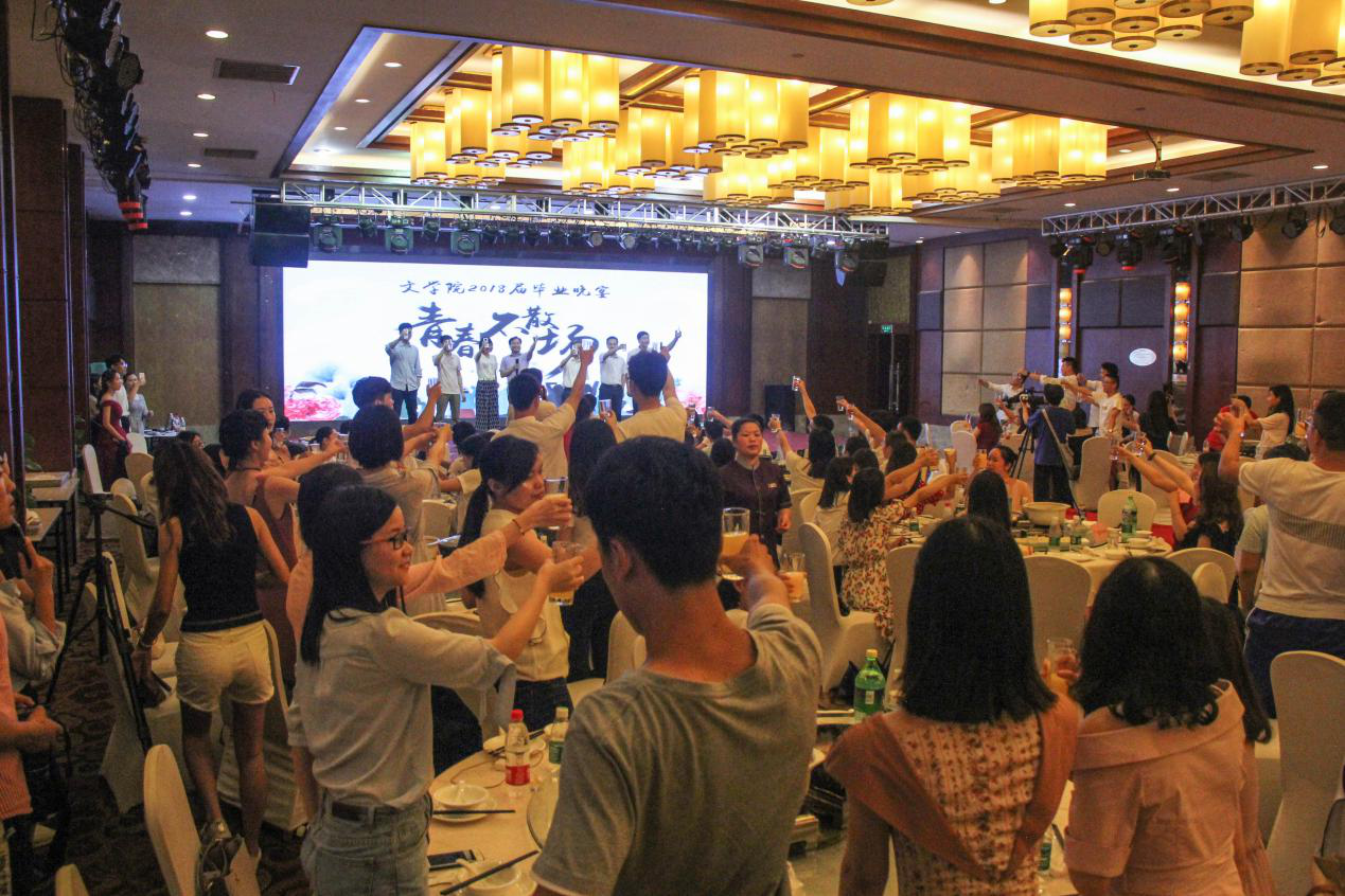 下午5时许,2018届全体毕业生欢聚一堂,在由毕委会组织策划的毕业晚会和晚宴在金九龙酒店顺利举行。全体老师与毕业生共享欢乐时光,共话离别之意。