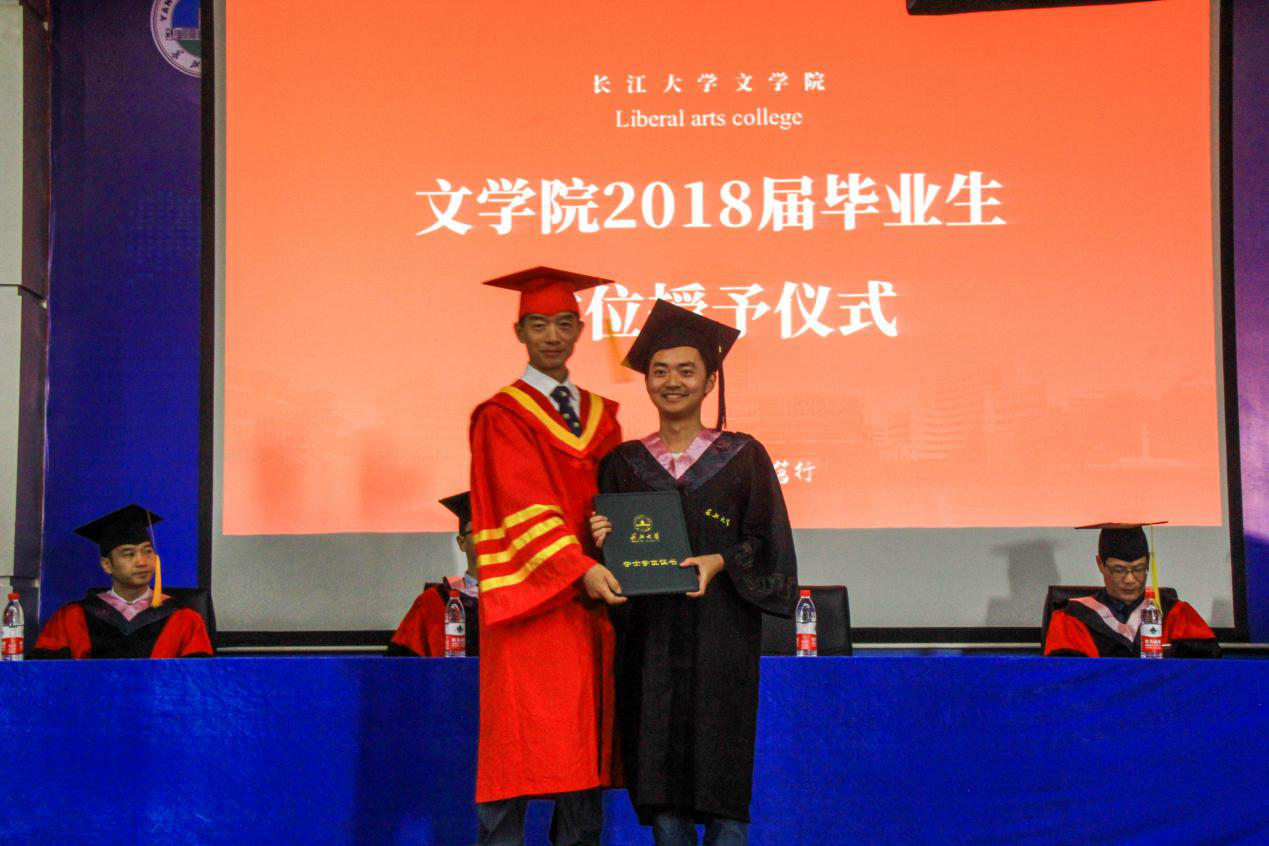 在学士学位授予典礼之前,文学院精心设计的请假条,给毕业生营造了离别的气氛,更体现了学院的人文关怀。随后,文学院院长许连军教授为14级全体毕业生拨穗、授予学位。