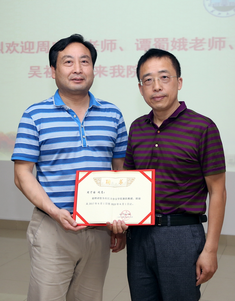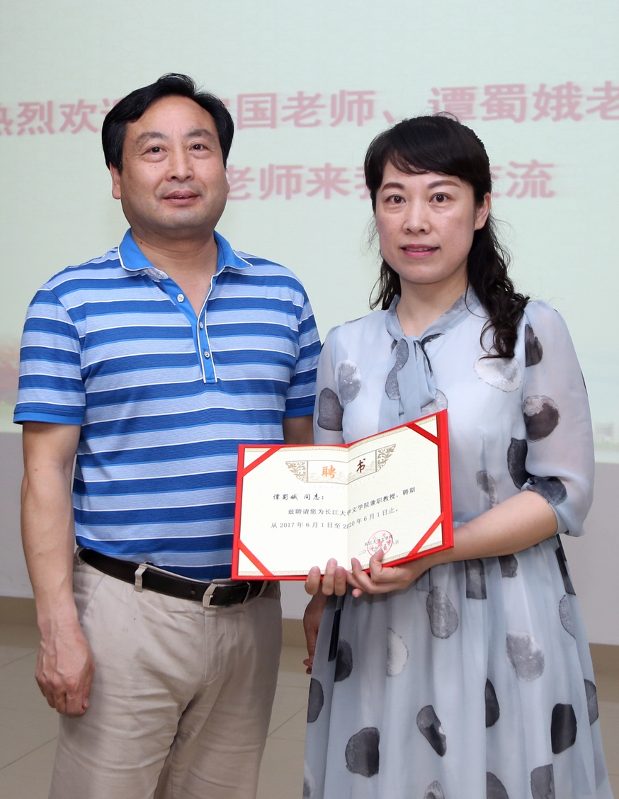 此次被聘请的三位兼职教授都是教育一线的中学语文教师,同时也是williamhill中文的杰出校友。他们分别是荆州中学的周守国老师、东方红中学的谭蜀娥老师和荆州实验中学的吴祺老师。在进行庄重的颁发兼职教授聘用证书仪式后,三位老师结合自己从教的经历围绕汉语言文学师范专业人才培养方向进行了讲话。