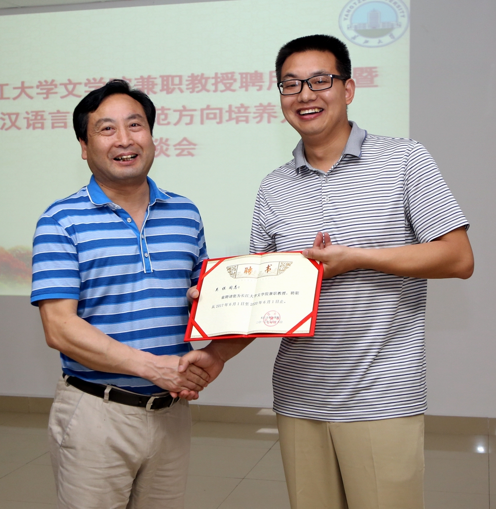 (通讯员 韩倩雯)为提升汉语言文学师范生的师范专业技能,5月19日下午两时许,文学院兼职教授聘用仪式暨汉语言文学师范方向培养方案座谈会在文科大楼705会议室隆重举行。文学院党总支书记杨鑫,副院长李华平、何世龙,汉语言文学师范专业的各位老师和中文师范14级的同学参加了此次会议。