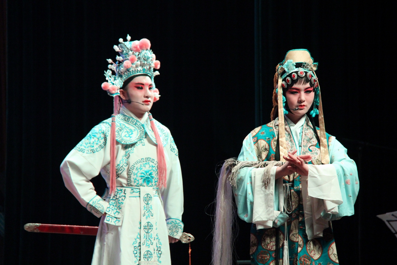 由马山民歌歌舞团带来的《喇叭调》、《荆江硪歌》以其优美的旋律、动感的舞蹈、特殊的唱腔以及生动生活场景的演绎让现场观众无不叫好。晚会还设置了独具匠心的师生互动环节,老艺术家们和学生同台演出的节目《莲台收妃》以丰富的形式、高超的唱功、精准的表演,一度将晚会推向高潮。由徐传娴主唱的《禅台报》,其生动的语言和传神的动作令观众们身临其境。中巴联合出演的舞蹈《Pakistan culture》又一次将晚会的气氛推向高潮。晚会在昌达艺术团贺演的歌舞《戏魂》中落下帷幕。