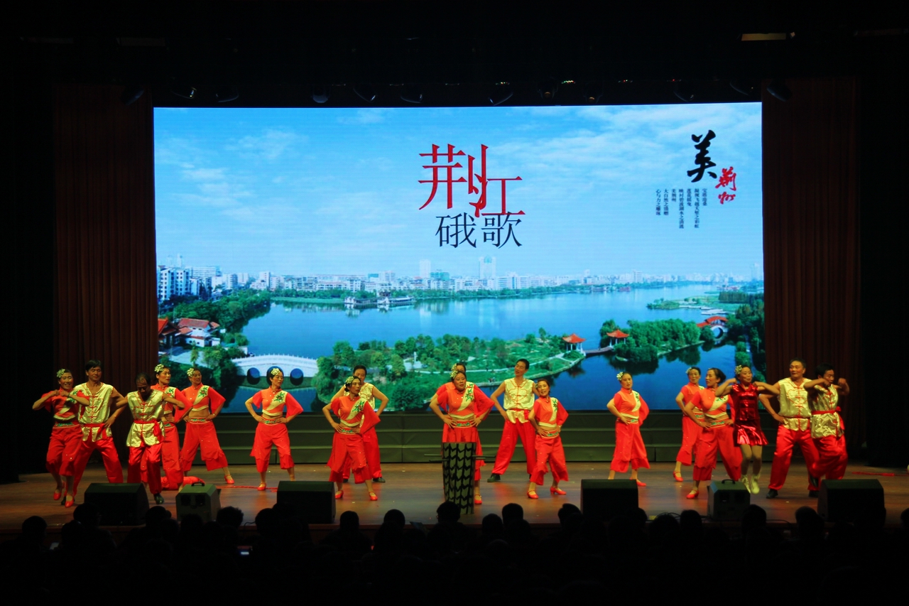 荆州市文化局副局长张大香、市文化局非遗部主任姚颖、市社文非遗科科长敖雷、市文联秘书长肖红、党组委员王琼、市群艺馆副书记王作检、副馆长周晶、市戏剧家协会常务副主席李建蓉、荆州市戏剧家协会副主席、市群艺馆非遗部主任赵云鹏等以及参加2016年全省高校科技/社科统计年报培训工作会议的老师出席晚会。校领导李家宝、周思柱,宣传部、团委、学工部负责人以及文学院师生一同观看了晚会。
