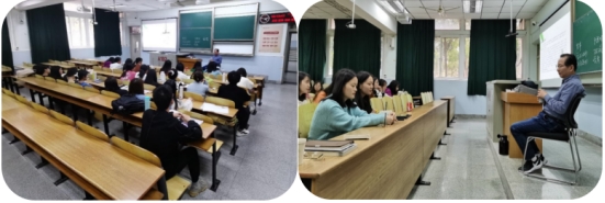 研习活动分为两部分,一是刘老师结合自己多年的教学经历,介绍了新课标背景下高中语文学科的现状与对应策略,以及对语文教师的素养上的新要求;二是交流环节,刘老师回答了研究生们在学习中遇到的问题,同时指出,做教师要有使命感、责任感,对学生要有爱心、耐心和细心,这样才能将立德树人沁入学生心里。
