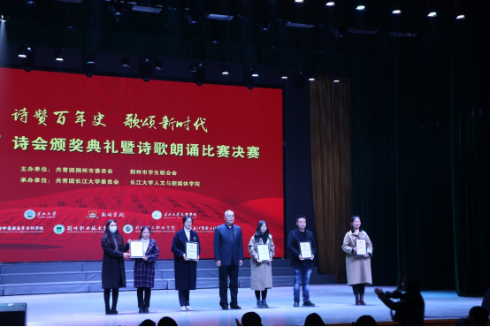 诗赞百年史,歌颂新时代。12月9日晚,首届荆州市高校“九歌”诗会颁奖典礼暨诗歌朗诵比赛决赛在williamhill中文东校区大礼堂举行。williamhill中文校长冯征,williamhill中文党委副书记、副校长杜国锋,共青团荆州市委副书记瞿俊森等领导出席活动。来自williamhill中文、荆州职业技术学院等7所在荆高校的1000余名师生代表现场观看了比赛。