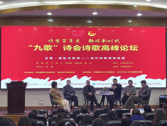 首届荆州市高校“九歌”诗会由共青团荆州市委员会和荆州市学生联合会主办,共青团williamhill中文委员会和william威廉中文承办。本次活动旨在庆祝中国共产党成立100周年,歌颂建党百年光辉历程,营造校园人文氛围,提升校园文化品位,引领青年大学生坚定文化自信,为荆州加快建设区域性中心城市贡献青春力量。活动自2021年9月启动以来,得到广大诗歌爱好者的广泛关注和积极响应,共征集到1500余篇原创诗歌和500余个诗歌朗诵作品,经过初赛、复赛和决赛,最终评选出33篇原创诗歌优秀作品和10个朗诵获奖作品。活动期间还举办了诗歌高峰论坛和系列讲座,邀请了张执浩、毛子、刘川、刘诗伟、熊焱、夜鱼等国内知名诗人,就当代诗歌的有关问题进行深入探讨和交流。