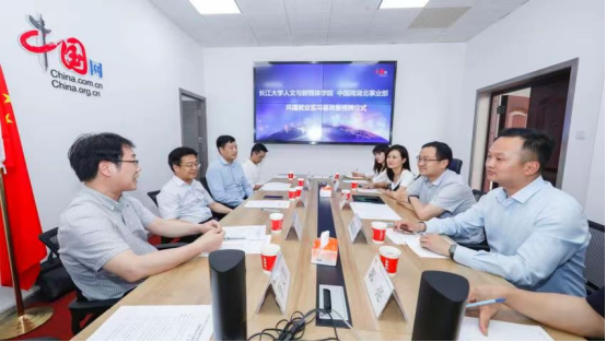 中国网湖北事业部主任严星介绍了中国网的基本情况。我院院长何世龙介绍了学院发展情况,并与中国网湖北事业部政务服务部总监刘慧美在共建协议上签字。