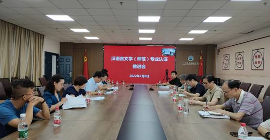7月8日下午,学院在文科楼705召开汉语言文学师范专业认证工作推进会。副院长杨家海主持会议,学院领导、认证工作小组成员线下参加会议,中文、历史系教师线上参会。