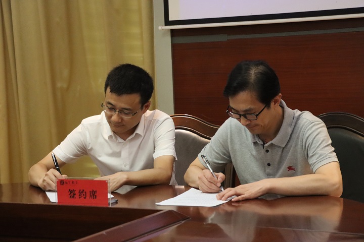 监利中学校长覃忠介绍学校基本情况,并和william威廉中文党委书记杨克非在共建协议上签字。