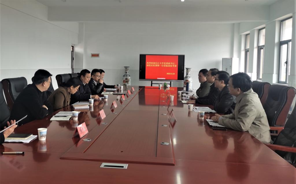 杜国锋一行参观了鄂州高中教育集团二中校区新校园,并与鄂州市副市长邱实、市教育局局长范玉姣、鄂州高中教育集团总校长闫东、鄂州二中党总支书记吴超等领导座谈交流,送上喜报和邀请函。